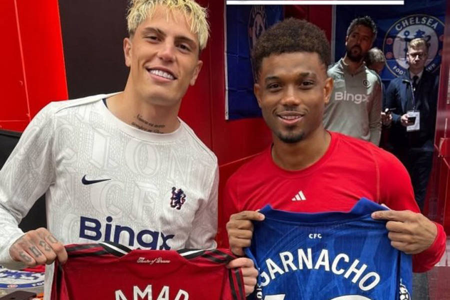 然而,阿马德显然仍然与加纳乔保持着友好关系,红蓝大战赛后两人在切尔西更衣室外交换球衣并微笑着合影。阿马德与加纳乔交换球衣的举动,在社媒得到了褒贬不一的评价,一些曼联球迷敦促这位4000万欧元边锋注意「审时度势」。